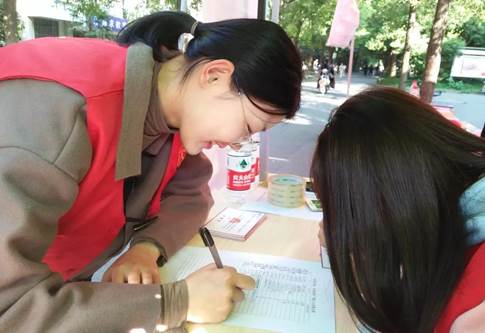11月9日下午一点钟志愿者们已经在食堂门口准备就绪,继活动场地布置完之后。活动正式开始。