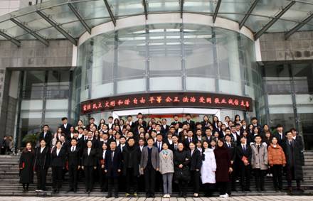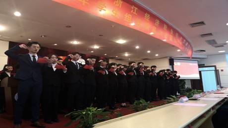 根据浙经院团「2018」18号文件《关于表彰校级优秀学生干部、干事的通知》文件,校团委对2017-2018年度在校团委学生会组织中,思想作风过硬、学习成绩优异、工作实绩突出的学生干部、干事进行表彰。承前启后,继往开来,学生干部换届交接仪式顺利完成,新一届干部上台集体亮相、佩戴团徽并集体宣誓。2017级新一届学生干部代表刘易炜上台发言,明确学生干部的宗旨是服务同学,应当工作严谨,态度端正,强调了尊重、包容和踏实的重要性并提出三点要求:一要踏实做人,踏实做事;二要树立正确的三观;三要励志勤学,刻苦磨练,在激情奋斗中绽放光芒。