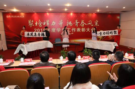 1月9日下午,我校在崇学行政楼三楼报告厅举行“聚榜样力量 扬青春风采”2018年度学生工作表彰大会,校党委书记骆光林,党委副书记、校长邵庆祥,党委委员、副校长姜宇国、聂华和相关职能部门负责人、各二级学院党总支书记出席了会议,学工部、学生处、团委老师和各二级学院辅导员、班主任及学生300余人参加了活动。