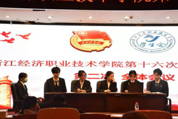 根据省学联、学校党委的指示精神和《关于召开浙江经济职业技 术学院第十六次学生代表大会的通知》有关规定,以各二级学院学生人数为基本依据,同时兼顾考虑代表在各学院、各年级、各专业分布的广泛性和平衡性,全校共划分8个选举单位,组成8个代表团。各选举单位在同级党组织的统一领导下,按照民主集中制的原则,学生积极参与,按照学生数1.5%的比例,民主推荐选举产生本次大会的代表共计165名。