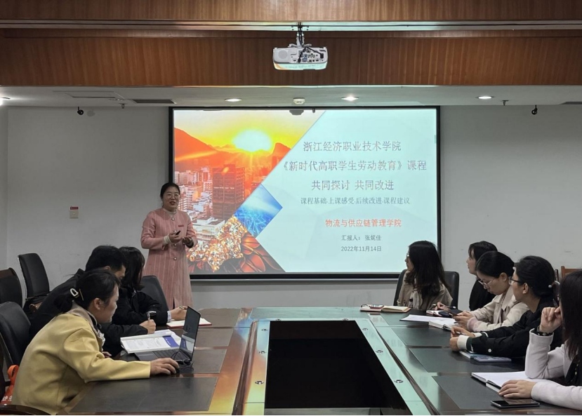 后续,物流与供应链管理学院党总支书记张妮佳就《新时代高职学生劳动教育》课程从课程基础、上课感受、后续改进、课程建议几个角度进行分享。她表示,在第一节课上首先告诉学生们的就是对课程要充满自信,因为这本教材我校多名教师参与编著;张妮佳还通过寝室打扫、参加西湖志愿者、单证专员的一天等学生自拍视频来分享上课感受;加强教学内容熟练度、教学设计完整度、教学方法灵活度、信息技术应用度这四个“度”来阐述今后课程教授中需要改进的方向。