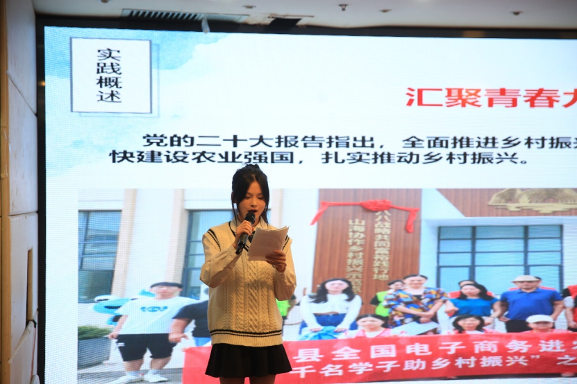接下来报告会正式开始,28支暑期社会实践优秀团队代表依次与我们分享他们的实践故事以及成果。有的团队通过线上电商平台帮助优质农产品走出大山,在乡村振兴中绽放青春,为乡村振兴插上了“数字翅膀”;有的团队“鲟”找共富路,深入衢州市响春底村进行考察,让共富画卷别样生动鲜活;有的团队用匠心振兴汤坞印文陶制造,以数字刻画研学AI路线,使匠心精神薪火相传。大学是一个追逐梦想的广阔舞台,同时也构造了一座步入社会的重要桥梁。