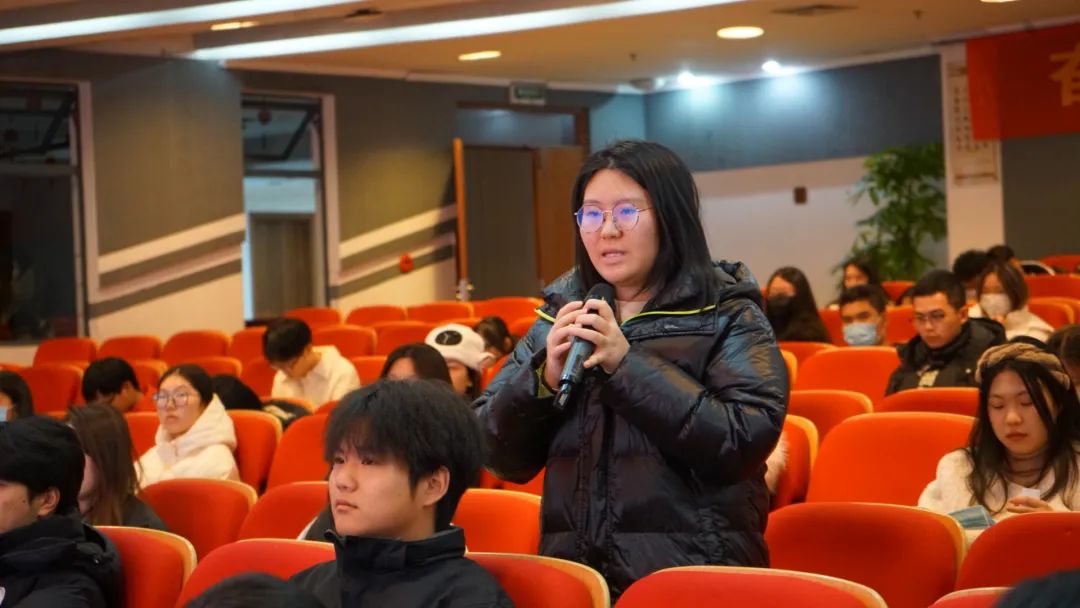 接着朱老师为我们讲述了近现代史上伟人们青年时的奋斗历程。鼓励青年以强者的勇气面对逆境和挫折,迎难而上、越挫越勇;以开拓者的锐意突破藩篱、积极进取;以实干家的态度立足本职、勇于担当。青年要胸怀“国之大者”,同心同德,团结奋进,以实际行动和优异成绩迎接新时代。