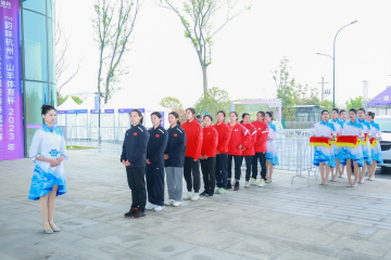 在富阳水上运动中心,有这样一群朝气蓬勃的“00后”大学生志愿者,在“韵味杭州”山羊体育杯2023年全国皮划艇静水春季冠军赛和激流回旋春季冠军赛赛场上优雅、端庄、大方地走向奖台,为赛事增添了一道青春靓丽的风景线。他们是来自我校物流与供应链管理学院空中乘务专业亚运会预录用颁奖礼仪志愿者的16名学生。