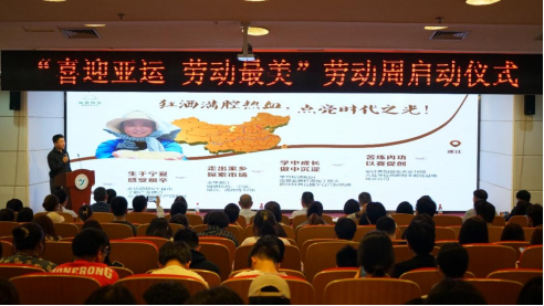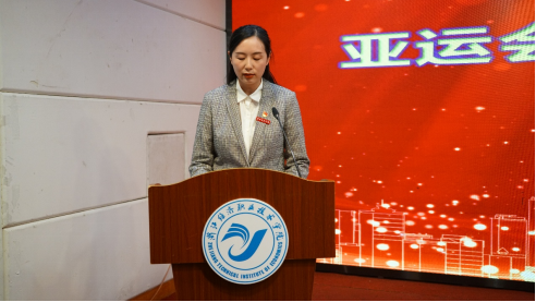 物流与供应链管理学院孟蓝蓝老师作为亚运会志愿者教师代表呼吁同学们做到以下几点:一、倡导亚运精神,传递社会热情,争做优秀志愿者。二、弘扬亚运精神,展现青春风采,争做文明传播者。三、践行亚运精神,凝聚青年力量,争做时代追梦者。学生志愿者代表王超杰也向全体经院学子发出劳动倡议,与劳动为友,与劳动为伴。