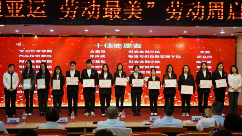 一年来,我校青年志愿者协会积极参加各项志愿服务,先后被评为“钱塘区优秀志愿者、十佳志愿者、最美志愿者、优秀志愿者”。活动上,我校对53名学生志愿者进行表彰并为各二级学院学生志愿者导师颁发聘书。