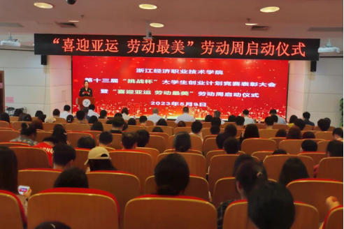 为全面学习贯彻习近平新时代中国特色社会主义思想主题教育,团结经院师生为劳动教育在新时代焕发光彩发挥重要作用。我校第十三届“挑战杯”大学生创业计划竞赛表彰大会暨“喜迎亚运 劳动最美”劳动周启动仪式在行政楼三楼报告厅成功举办。校党委书记骆光林,党委副书记、工会主席吕红刚,党委委员、副校长姜宇国,党委委员、纪委书记朱利萍,党委委员、组织部长、宣传统战部长陈专,党委委员、办公室主任程余伟以及各相关职能部门负责人,二级学院党总支书记、副书记、团总支书记出席了本次大会。
