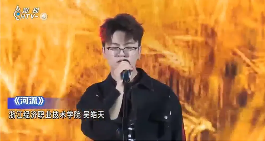 同样为校园十佳歌手的吴皓天,一首《河流》极具感染力。歌曲以河流为象征,传达出生命的流动和变化,表现出无尽的希望和勇气。在演唱过程中,从浅吟浅唱逐渐过渡到放肆宣泄,情感的爆发如同河流奔腾,将摇滚的力量展现的淋漓尽致。