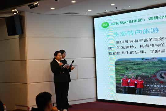 展示会上,25支暑期社会实践优秀团队代表按序与我们分享自己的实践故事以及成果。有的团队来到杭州市淳安县,结合团队成员专业优势发展淳安特色文化、农产品服务助推淳安;有的团队进入金华市武义县桐琴镇,开设与当地文化、历史、自然资源等相关的课程,培养学生对家乡的认同感和自豪感;有的团队来到宁波市镇海区,实地调查当地乡村经济发展状况,分析其农业、农村和农民的发展状况和存在问题,了解其收入来源和乡村面貌的变化通过走访等形式,联系助力乡村农业的新型农业人,与他们共同探讨乡村的进一步发展与未来规划;有的团队来到福建省龙岩市长汀县,探寻红色足迹,传承长征精神。