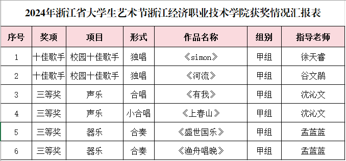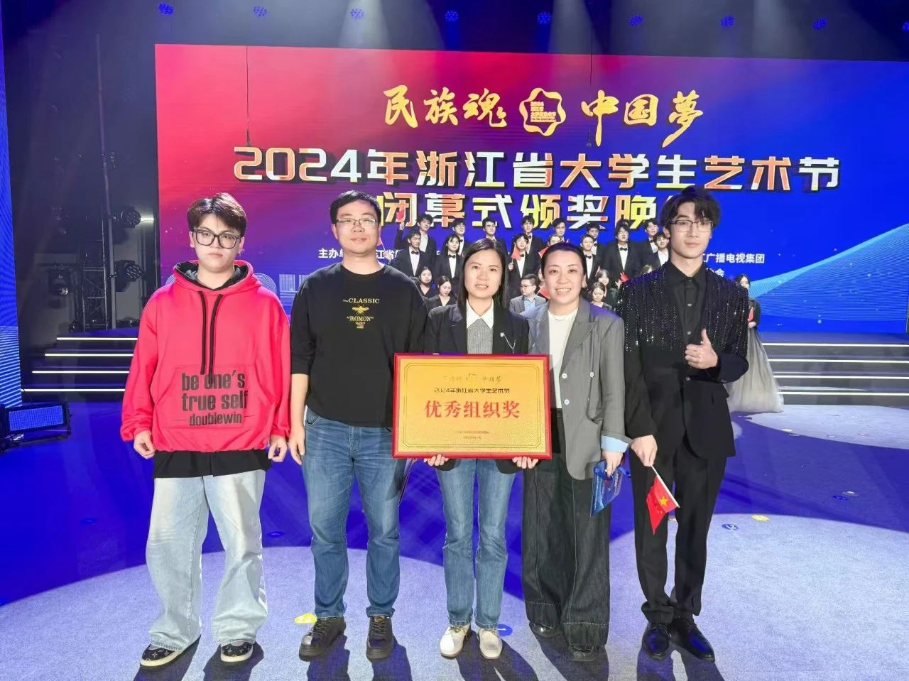 近日,由省教育厅、省文化和旅游厅、团省委共同主办的2024年浙江省大学生艺术节在浙江中医药大学顺利闭幕。我校荣获十佳歌手2项、三等奖4项,学校获优秀组织奖,在省级艺术赛事中实现了历史性突破。其中,我校工商管理学院沈烨洺以歌曲《Simon》参加闭幕式颁奖晚会。