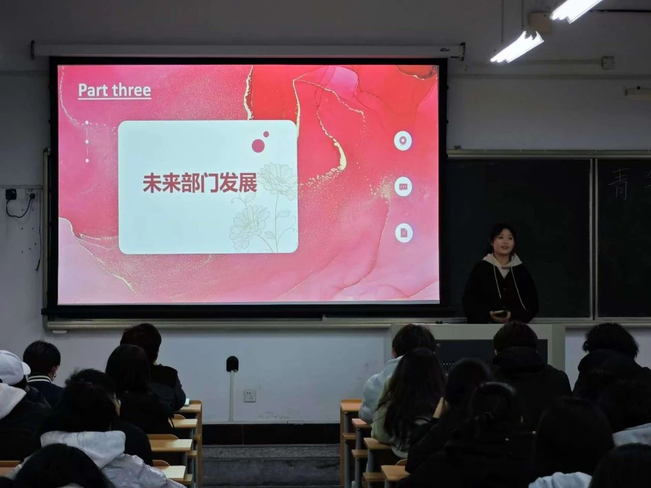吕赵丽主任讲解未来部门发展,希望各部门各司其职,互相配合,为校青协以后的工作而努力奋斗。