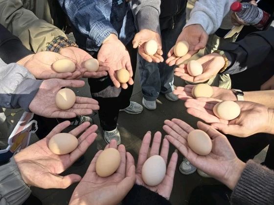 待五所高校汇集完毕,杭州铁人三项运动协会和浙江省新四军浙东分会给每位学生发了鸡蛋,休息片刻后,“红旗会师五云山”活动正式拉开帷幕。
