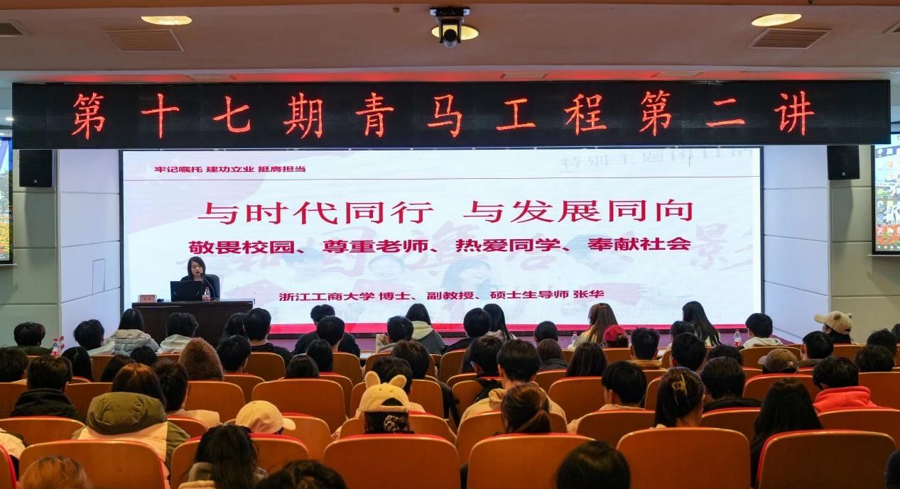 2024128日下午,第十七期青马工程班第二讲于行政楼三楼报告厅进行,本次课程讲座有幸邀请到了浙江工商大学的张华博士,校团委书记周美华与青马班近300余名同学参加。本次讲座虽以如何成为一名优秀的学生干部为主题,但它的影响力与价值绝不仅限于学生干部群体,而是面向广大有志青年,为他们的成长与发展提供了丰富的精神滋养与行动指引。