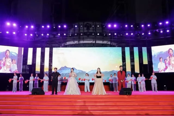 典礼上,我院选送的节目精彩呈现 ——2024 级同学与 2025 级新生共同演绎《我爱你中国》,在抗战胜利