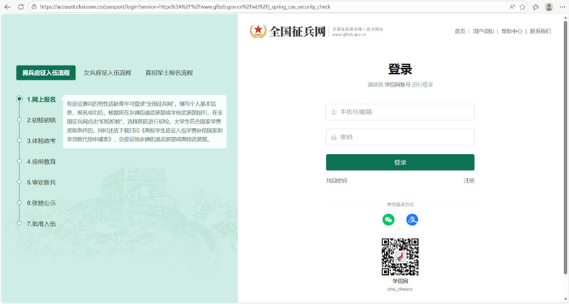 (1)进入网站:全民征兵网,登录https://www.gfbzb.gov.cn/或扫描下图二维码进入全国征兵网。