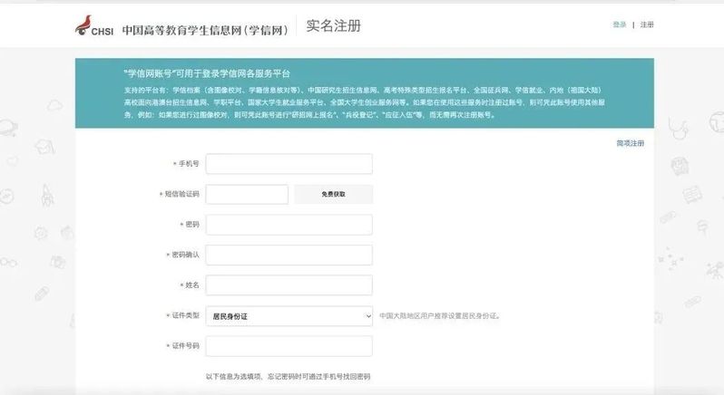 如果你没有注册过账号,则需要在页面上点击“注册”按钮,注册一个学信网账号进行登录。注册学信网账号必须实名,一定要用真实姓名和身份证认真填写,兵役机关将对有效信息进行审核。