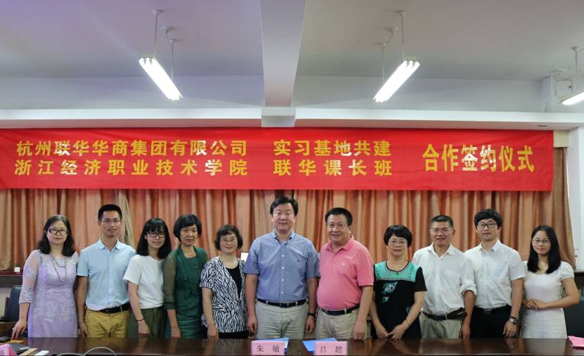 6月20日下午,我院商务管理专业与杭州联华华商集团“实习基地共建联华课长班”合作签约仪式在我院成功举行。杭州联华华商集团有限公司副总经理朱敏、人力资源部&政工部经理陶燕与学院全体领导班子及商务管理专业部分骨干教师参加了本次签约仪式。