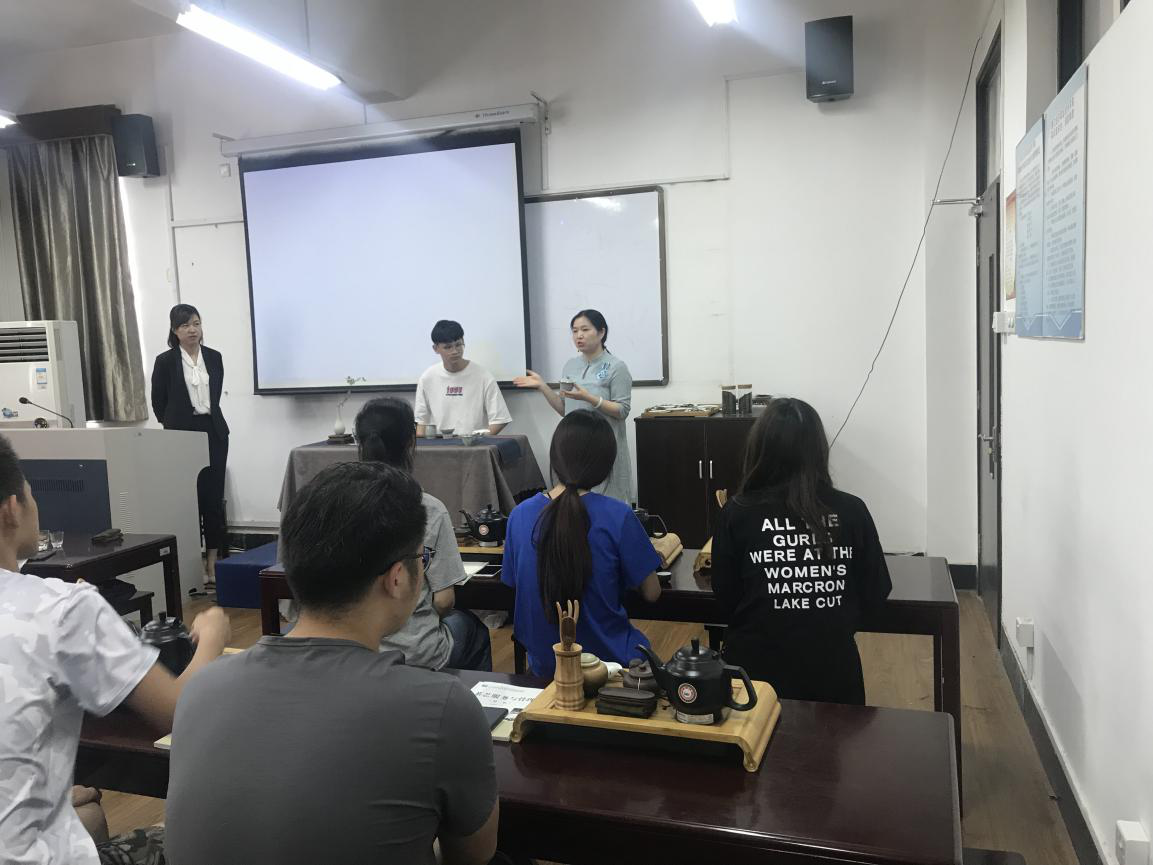 5月10日 龙井雷迪森庄园酒店的应珊珊女士给学生们带来一堂茶艺茶道的实践操作课。她告诉学生酒店是通过茶文化主题、茶文化特色、特色茶文化推广、茶艺文化的作用这四个方面来体现出了龙井庄园浓浓的茶文化。使老师和学生都受益匪浅。