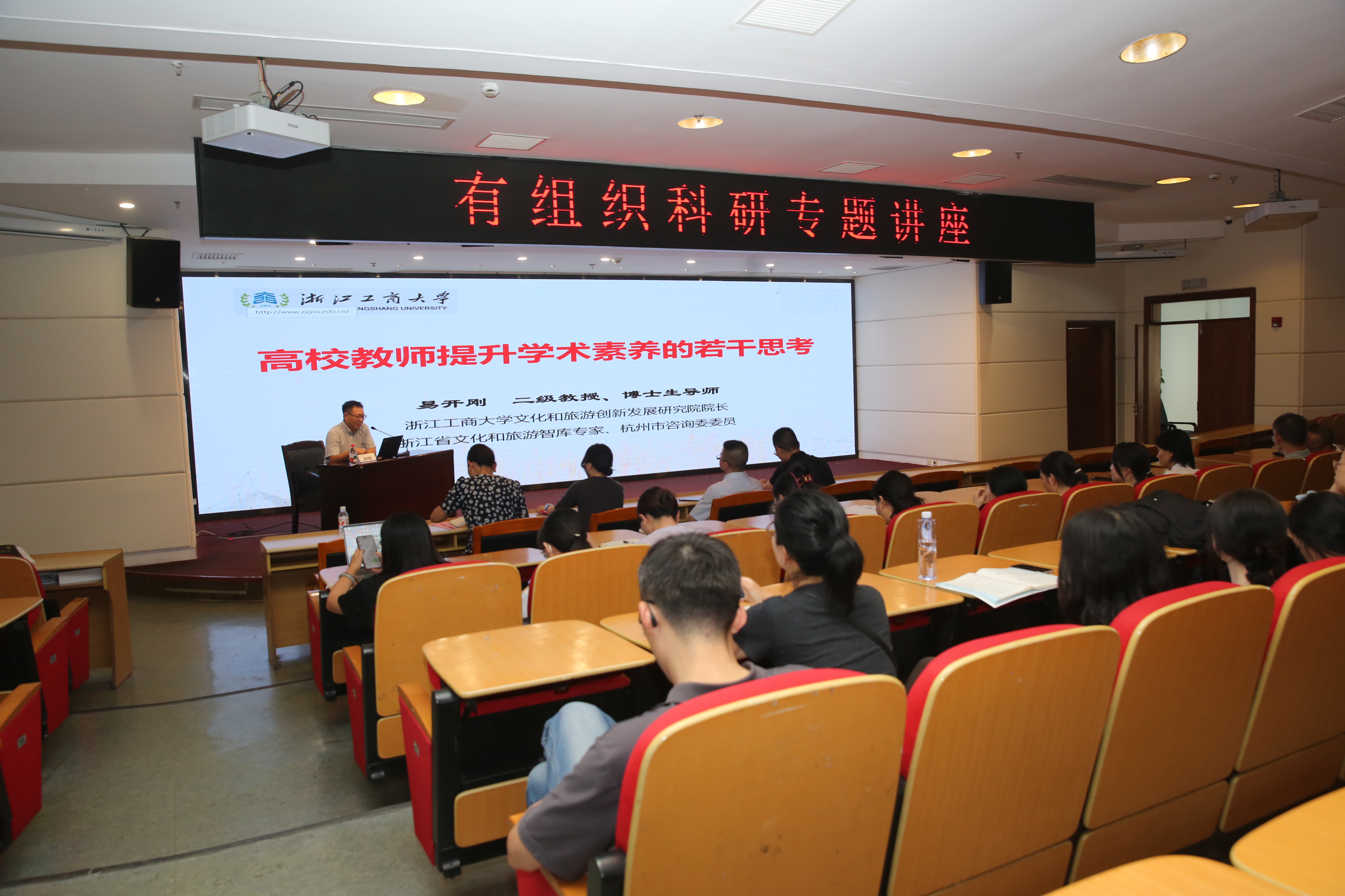 为有效提升教师科研能力与项目申报质量,9月16日下午,智慧旅游学院与数字技术学院在学校崇学行政楼三楼报告厅联合举办“高校教师提升学术素养的若干思考”专题讲座。讲座由浙江工商大学文化和旅游创新发展研究院院长、二级教授、博士生导师易开刚教授主讲,智慧旅游学院党总支书记、执行院长崔悦主持。