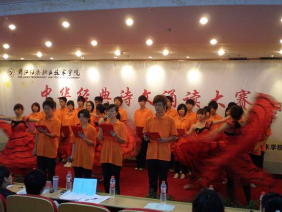 5月25日下午2点,首届中华经典诗文诵读大赛决赛在行政楼三楼报告厅隆重召开。学院党委副书记林丽萍、学院副院长邵庆祥出席了本次大赛,并为获奖选手颁奖。在学院领导和学院各部门的大力支持下,本次大赛取得圆满成功。来自管理技术学院、数字信息技术学院等多个学院的十二组选手进入了这次决赛。选手们富有激情的诵读一次次地掀起全场的高潮。其中,财会金融学院林丽等同学的《苏轼词二首》以自信激扬的演绎、沉稳熟练的台风博得评委和观众的好评,获得了本次比赛的一等奖。比赛在充满浓郁人文氛围的书画表演中划上完美句号。最后,在评委们的一致判定下,管理技术学院、数字信息技术学院两个学院获得了本次大赛的最佳组织奖,杨明峰、王云玲两位老师获得了最佳指导奖。