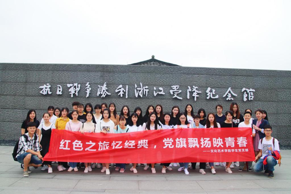 为了“铭记历史,缅怀先烈,珍视和平,警示未来”,文化艺术学院学生党支部在支部书记俞琰和教师党员余文娟的带领下,30余名学生党员、入党积极分子和学生干部于2018年5月20日前往浙江受降纪念馆,开展支部“红色之旅”品牌活动,践行“两学一做”学习精神。