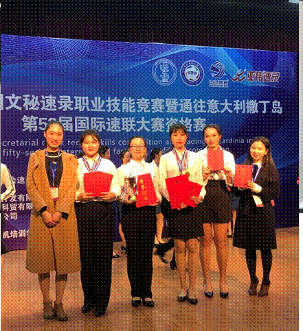 10月27日,“2018年全国文秘速录职业技能竞赛暨通往意大利撒丁岛第52届国际速联大赛资格赛”在山东烟台圆满结束。“亚伟杯”速录综合技能竞赛包括办公排版、蒙目速录、极限看打等7个比赛项目,本次大赛有全国27个省市55所职业院校的480余名选手参加。由我校文秘专业教师斯静亚、诸辰辰指导,沈祎带队,傅珂雯、陈捷翔、齐松松、任轶蓝四位同学组成的代表队荣获团体三等奖,还顺利获得了2019年第52届卡利亚里国际速联大赛的参赛资格及入场券,这将极大地鼓励师生们为了取得更大的荣誉而不断努力向前,在世界的赛场上为校争光。