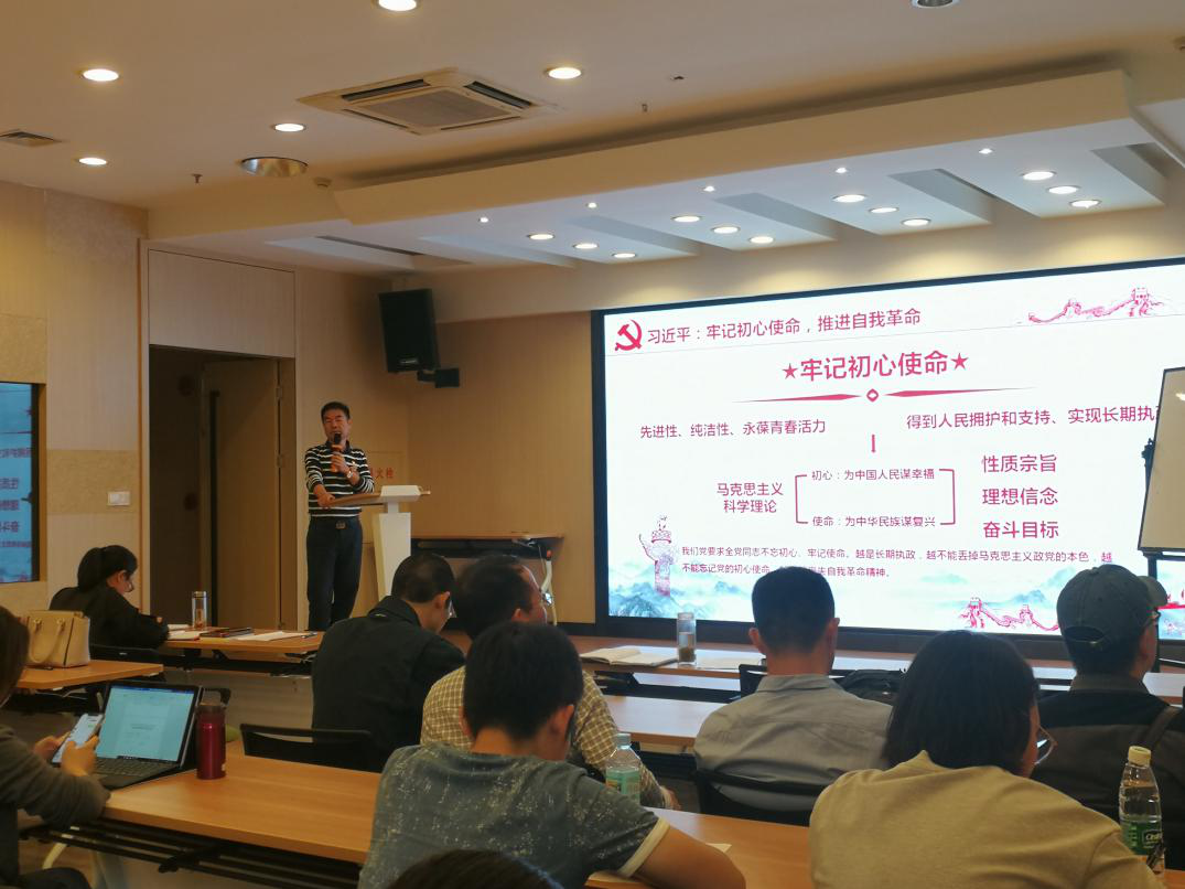 会议首先由党总支书记胡振浩带领全体教职工进行理论学习。学习由三方面组成:第一,牢记初心使命,推进自我革命;第二,习近平在甘肃考察时强调的坚定信心开拓创新真抓实干,团结一心开创富民新龙新局面的精神。胡书记认为,我们作为教师,要培养为国家有用,为国家所需的人;在专业建设过程中,要了解自己的特色并发挥出来;要多读书,教学设计应随着社会的发展而更新。第三,学习《不忘初心,牢记使命》。胡书记结合近日香港事件,指出作为人民教师,站在正确的政治立场上培养学生是我们最大的责任。