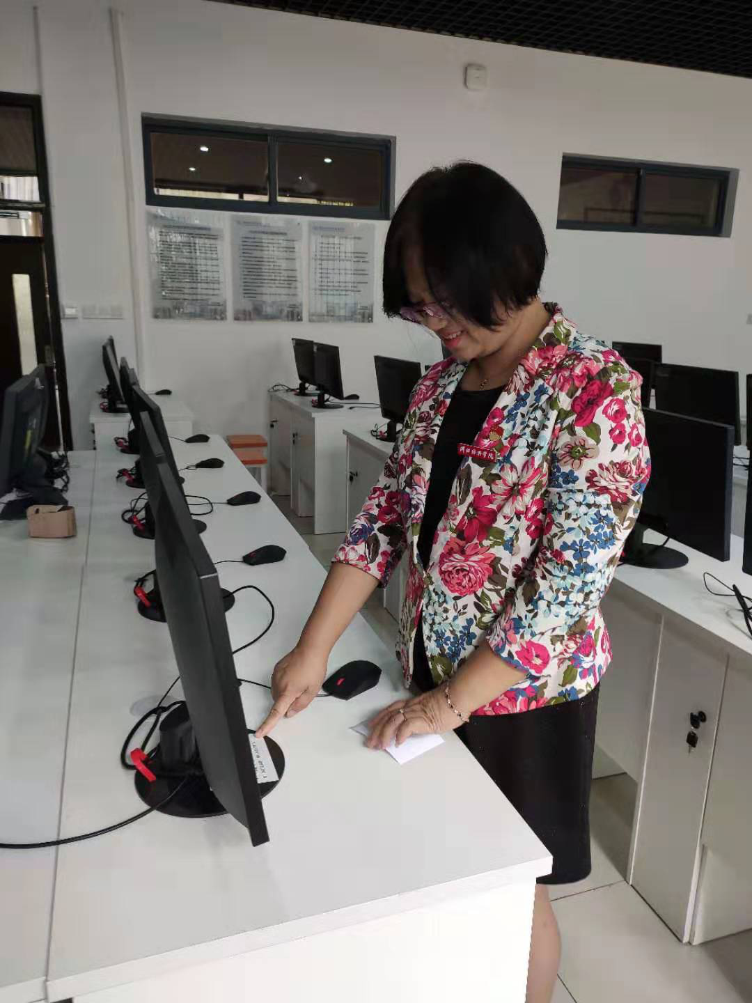 校党委委员、纪委书记朱利萍老师为实训室整理标签