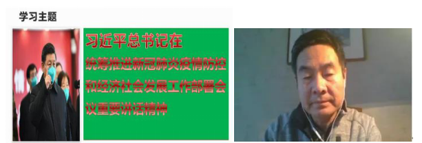 胡振浩书记结合学习体会作主题发言,他指出,自疫情发生以来,以习近平同志为核心的党中央强化统一领导、统一指挥、统一行动,坚持全国一盘棋、统筹各方面力量支持疫情防控,并结合疫情防控形势不断调整战略指引和战术指挥,不断推进疫情防控取得积极成效。习近平总书记关于应对新型冠状病毒肺炎疫情的系列重要讲话精神体现了习近平总书记一贯的治国理念,此次党中央抗击疫情的种种举措,处处体现着“以人民为中心的执政理念”,体现了中国特色社会主义体制优势,在疫情应对中,对内严格控制疫情,为世界各国争取时间,对外提供多种援助,团结互助,生动诠释了“人类命运共同体”的理念和大国担当、大国风范。胡振浩强调,表示全体党员要深入学习习近平总书记相关讲话精神,全面贯彻落实中央和省委省政府关于疫情防控的决策部署和学校党委的有关决定,坚定政治站位,不断强化责任担当,做到守土有责,积极做好校园防控、信息排查、线上教学和师生心理健康疏导等工作,为师生健康安全和开学复课做好最充分的准备。