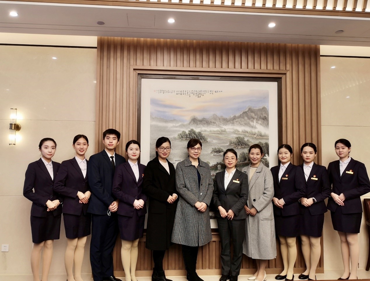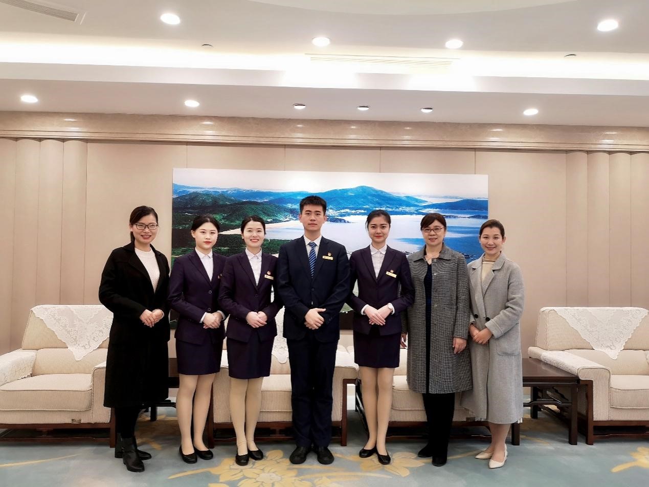 为深化产教融合,打造独具特色的“工匠型学徒”人才培养模式,近日,文化艺术学院空中乘务专业傅强、崔悦、金蕾等一行赴浙江省人民大会堂、西湖游船、楼外楼等学徒制实习基地走访调研,看望校友并深入走访了参加现代学徒制的20余名大三学生。