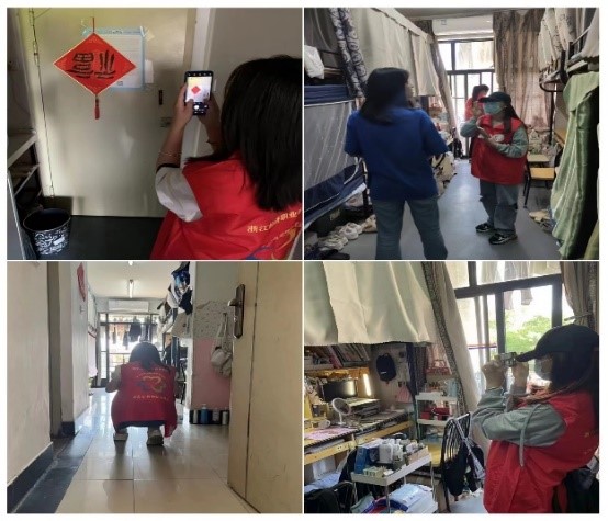 由学生党支部牵头,优中择优,从中再评选出“党员示范寝室”。活动伊始,党员之家部门干事带队前往参赛寝室进行检查、拍照。在检查过程中,学生党支部成员对其寝室进行介绍,由学生干事点评后,并提出建议和希望,提醒同学们在防控关键时期,党员靠前一步走,宿舍长最强排头兵,带领宿舍成员认真清扫,做好个人防护工作。