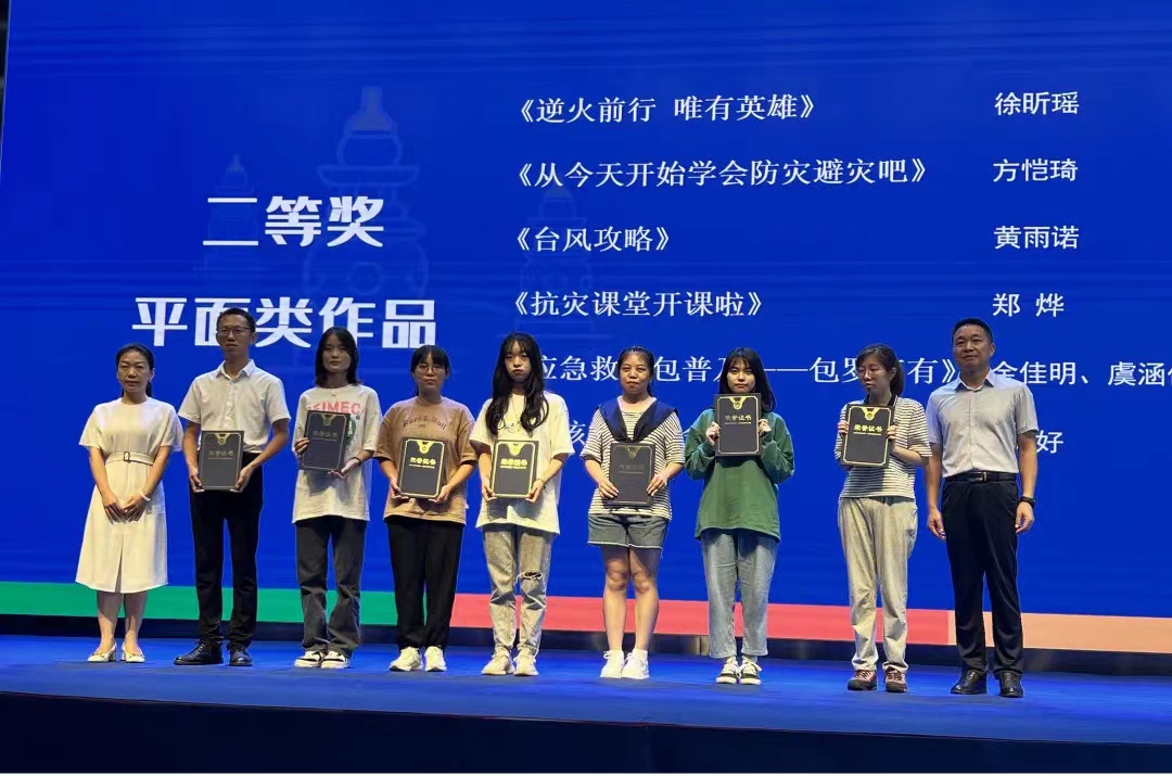 近日,在首届浙江省大学生防灾减灾科普作品大赛中,我校艺术设计专业学生余佳明、虞涵伊、葛姿、王鸶洁同学创作的作品《应急救援包普及——包罗万有》荣获二等奖,池杭谦、陈绘宇同学创作的作品《防灾减灾科普》荣获三等奖,同时我校获得了优秀组织奖。