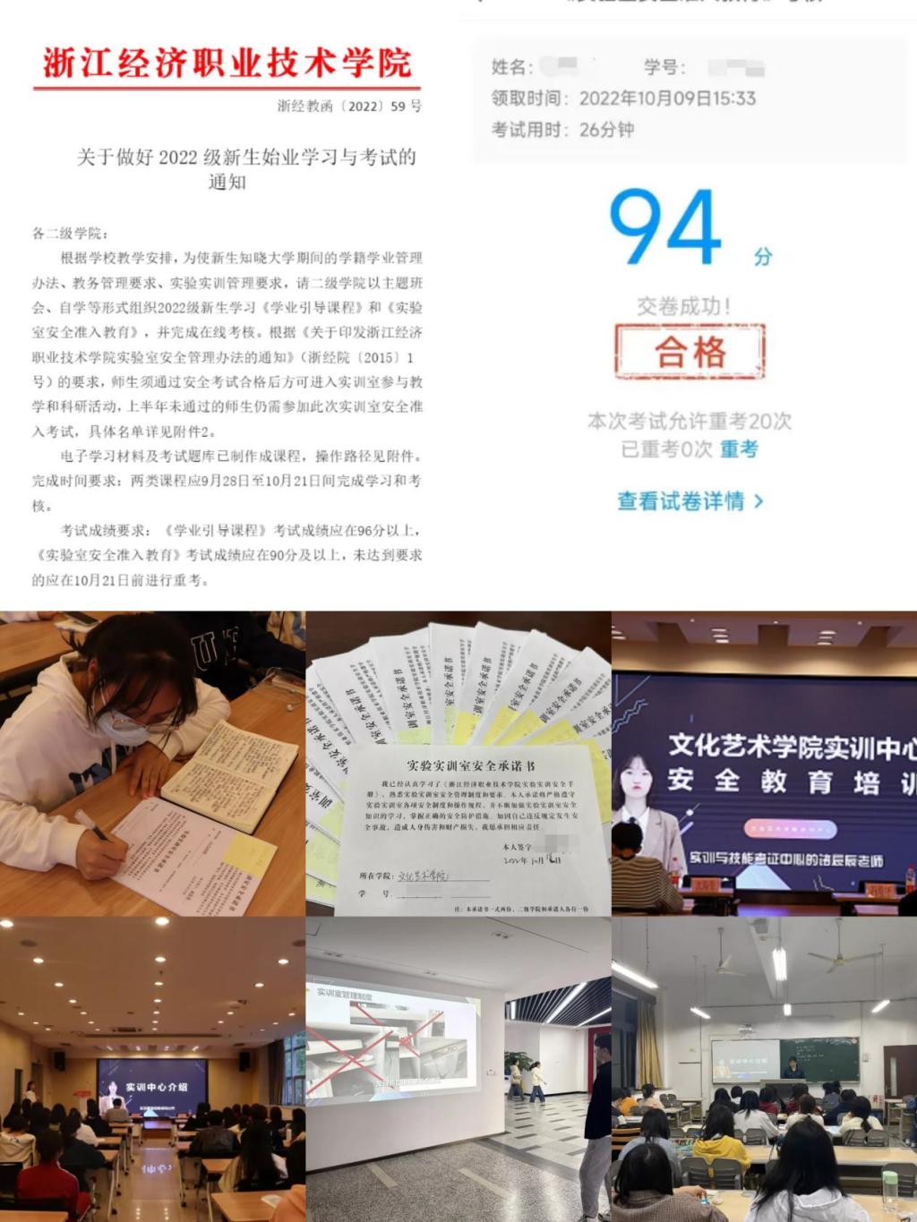 一、参加安全考试 做好安全守卫,9月下旬,根据教务处文件指示,实训中心组织2022级全体新生有序进行实训室安全准入教育和线上安全准入考试,确保每一位进入实训室上课的学生能够掌握安全操作能力,熟知安全规则和安全自救的流程。