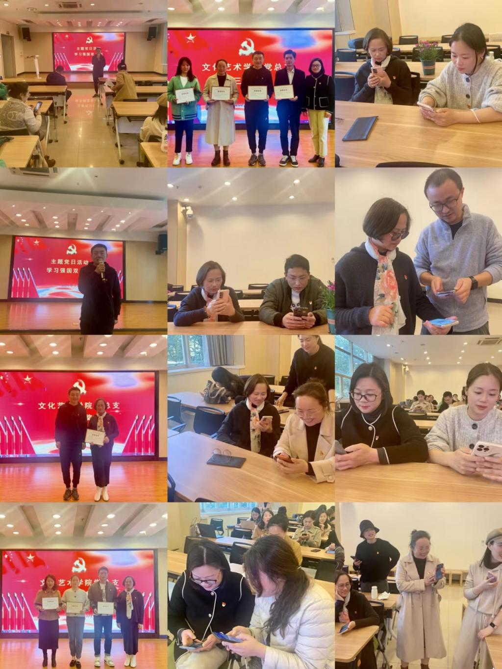 为深入学习贯彻习近平新时代中国特色社会主义思想和党的二十大精神,巩固拓展理论学习教育效果,推动理论学习教育常态化和长效化,2023年3月7日,文化艺术学院党总支利用学习强国平台,开展“双人PK答题赛”主题党日活动。活动由学院党总支书记沈海伦主持,校党委委员、纪委书记朱利萍出席,总支全体党员参加。