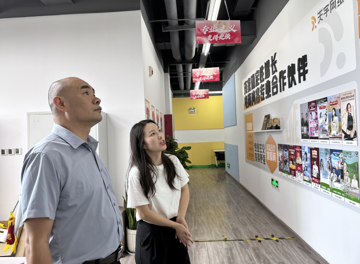 一走入公司,走廊里一长排的《天下网商》杂志就以鲜艳的颜色、精致的排版抓住了大家的眼球,公司的特色走廊文化深入人心。人力资源部主管龙风带领师生一行参观了公司,介绍了天下网商的发展历程、企业文化,同时还参观了公司内部的天猫超市、聚划算、小米官方等直播间。