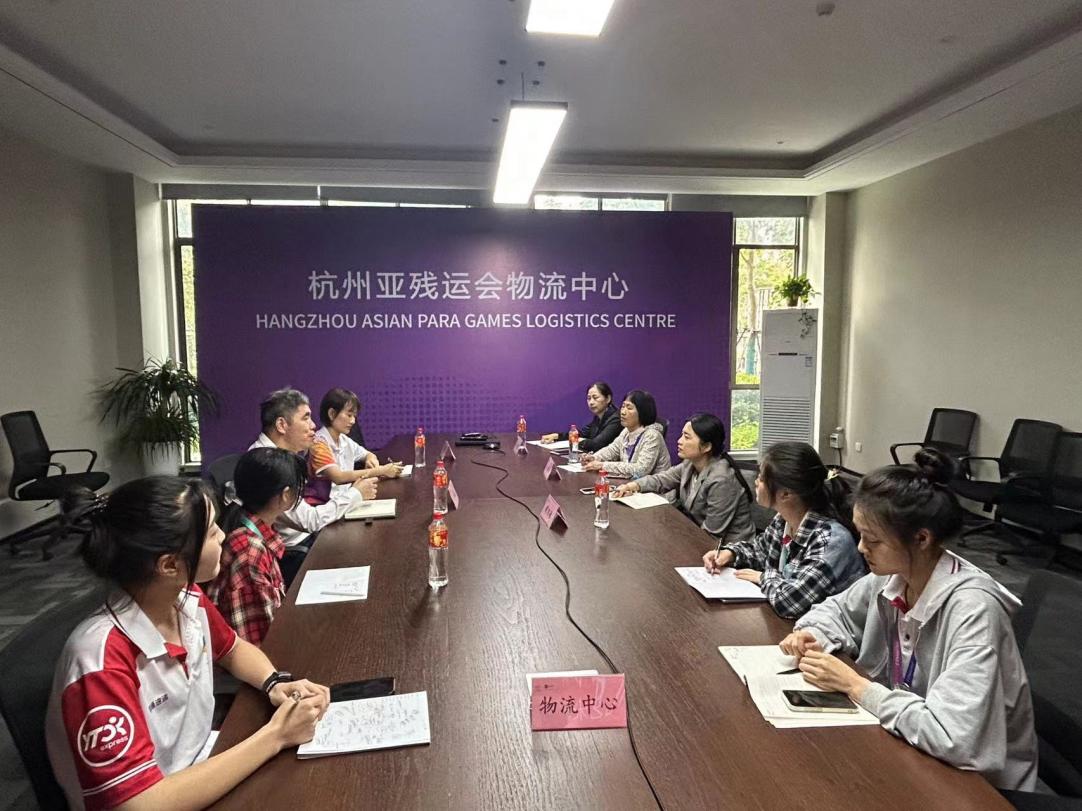杭州亚运会和亚残运会物流中心副指挥长洪淼向文化艺术学院督导组介绍了12名学生的学徒制工作情况。自6月底学徒制项目“杭州亚运会物流涉外人才培养研究”开展以来,经院学子用热心、贴心、细心的专业服务,以最快的速度、最短的时间、最小的代价,在有限的时间内高质量完成工作目标,争取最好的结果,展现了浙经院学子的素质与风采,为杭州亚运会的圆满落幕贡献了不可或缺的力量。学徒制带队指导教师张滢不仅要关注12名学生的实习情况,及时对其业务进行有效指导,还因自身出色的英语能力,被杭州亚运会和亚残运会物流中心聘为协调联络组主任,向亚(残)运会各参赛团队、国际媒体和转播商用户、技术官员等客户群进行物流政策的宣讲。张滢老师凭借对相关政策的熟悉了解,耐心细致地与各个职能团队进行沟通交流,受到了外界一致好评。洪副指挥长对华体汇app全站版文化艺术学院13名参与学徒制项目的师生给予了高度的评价和认可。
