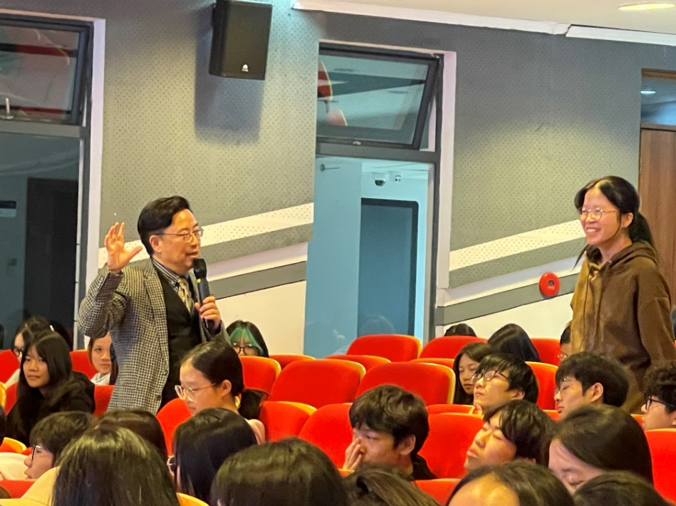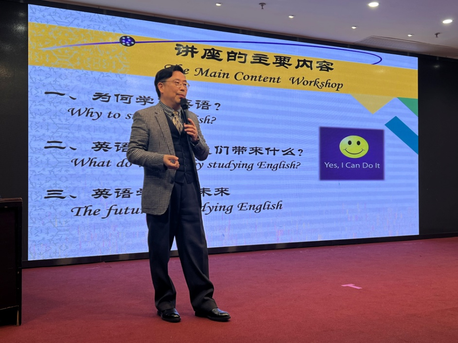 讲座中,徐辉老师结合自身从事国际旅游业及旅游教育30多年的经历,总结如何将英语学习应用到旅游行业,并和同学们分享了英语学习的过去、今天和未来以及它和旅游业的关联。在热点问题方面,徐教授和同学们探讨了AI时代英语学习的新趋势、新动向。在提问环节,徐教授和同学们进行了活泼的互动,与会同学均感收获满满,信心满满,讲座取得圆满成功。