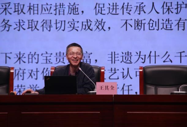 国家级非遗项目越窑青瓷烧制技艺代表性传承人、浙经院文化艺术学院客座教授嵇锡贵为参与培训的传承人带来了精彩的讲座,分享了她六十年如一日在非遗传承和创新方面的宝贵经验。复旦大学教授、博导、中国民间文艺家协会副主席郑土有,中国美术学院教授、浙江省非遗保护专家王其全,以及传统音乐研究专家、教授黄大同围绕着非遗的界定、创新和融入现代生活分别做了专题讲座。