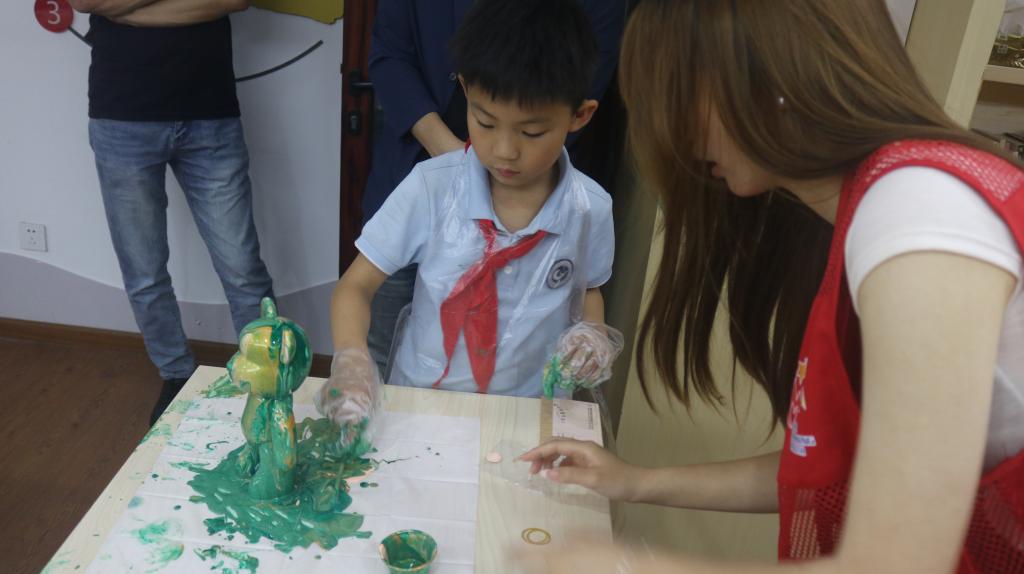 活动现场,同学们提早精心准备,满心欢喜等待小朋友们的到来。他们带领着小朋友们手握梦想,开启了流体熊的创意体验,同学们引导孩子们充分发挥想象力,在流体熊上进行涂鸦和绘画。