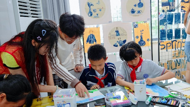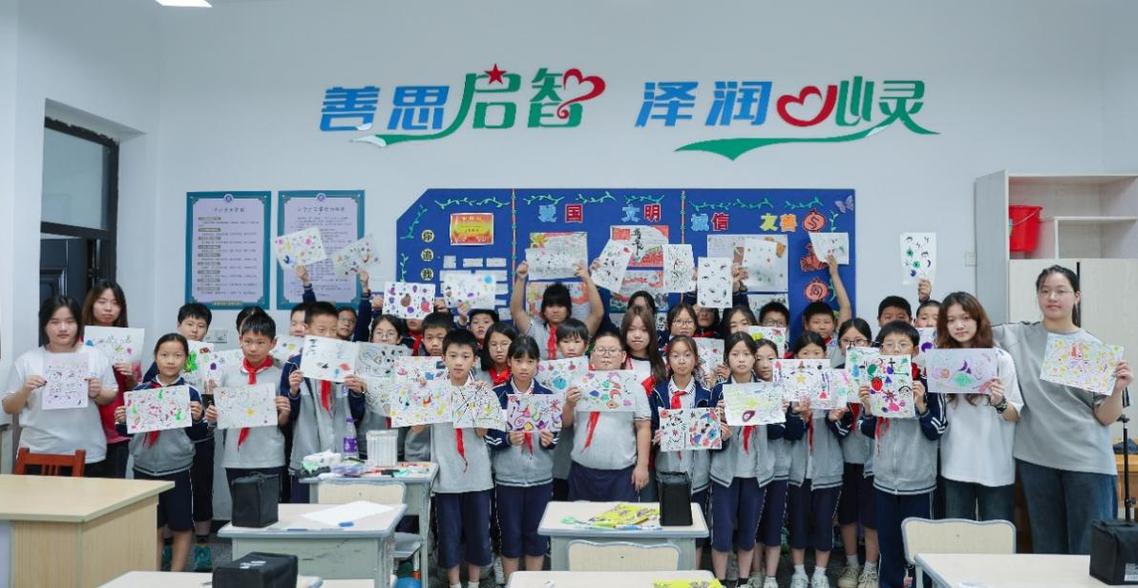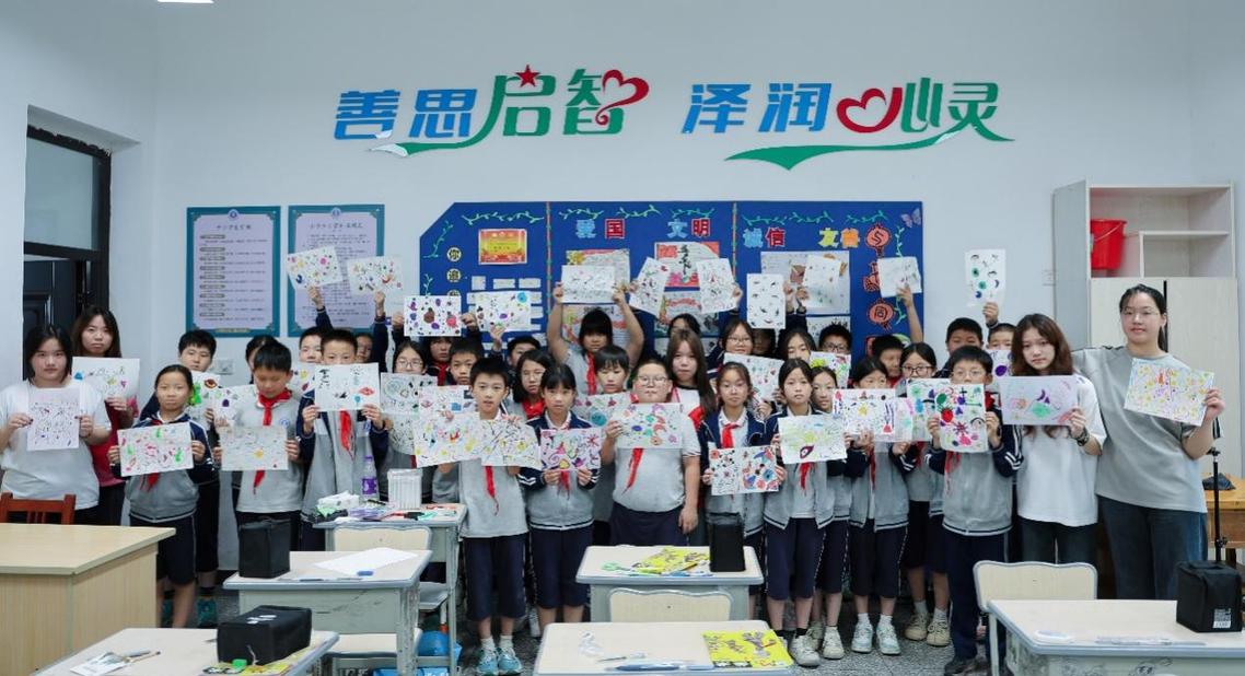 在乡村振兴和共富的时代背景下,艺术设计专业团队围绕着艺术赋能美丽乡村建设的理念,开展了“送课下乡”的活动,将美育的种子播撒在乡村沃土,用精神富裕点亮乡村振兴之路,探索共富新路径。2025年6月下旬,由 29 名艺术设计专业师生组成的实践团队,奔赴浙江衢州龙游县泽随实验学校,开展为期二天的小学生艺术启蒙美育社会服务。