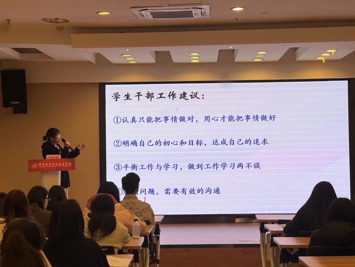 本次课程为学员们搭建了与优秀校友交流学习的桥梁,希望学员们能以吴桂君校友为榜样,在未来的学习与工作中,以志为翼,凭借顽强的毅力和扎实的才学,书写属于自己的辉煌篇章,成为优秀的学生干部和全面发展的好青年!