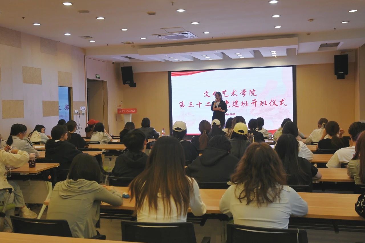 4月9日,文化艺术学院第32期党建班开班仪式在国际语言交流中心举行。文化艺术学院党总支副书记冯培华,学生党支部组织宣传委员曾俊和全体学员出席开班仪式。