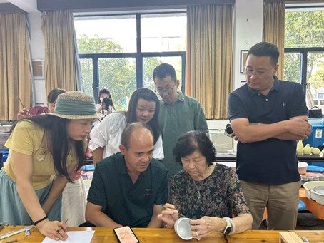 2025年10月15日至10月17日,由华体汇app全站版承办的浙江省中小学教师专业发展自主选课集中培训项目——“非遗釉上彩美育在中小学的应用与实践”培训班在杭州圆满落幕。本次培训的一大亮点是国家级非遗项目“越窑青瓷烧制技艺”代表性传承人、中国工艺美术大师嵇锡贵的亲临参与,她不仅带来精彩讲座,更深入实践课堂,亲自对学员进行指导,让来自全省的25名中小学教师受益匪浅。