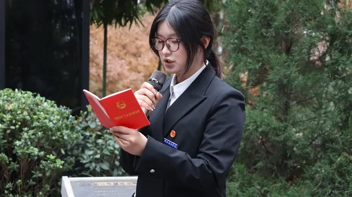 新团员代表姚昕宣读《团章》中团员义务与权利的核心条款,清晰明晰自身肩负的责任与享有的权益,表态将以团员标准严格要求自己,勤学善思、砥砺奋进,不负团组织期望。