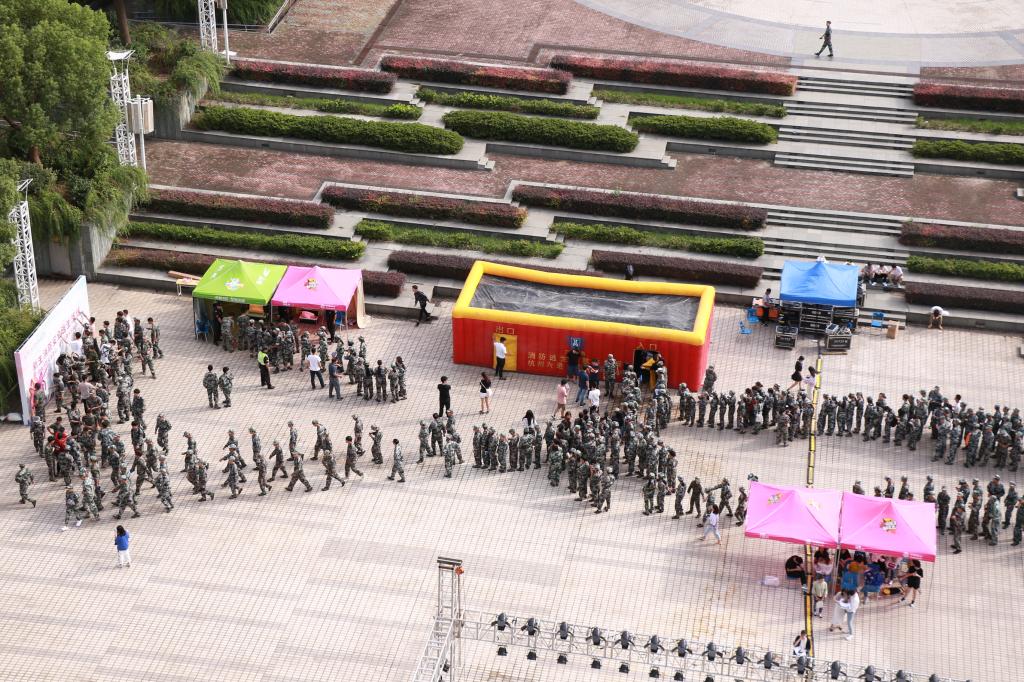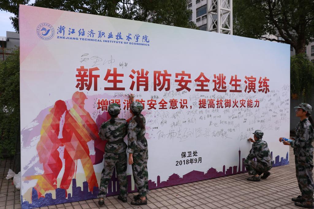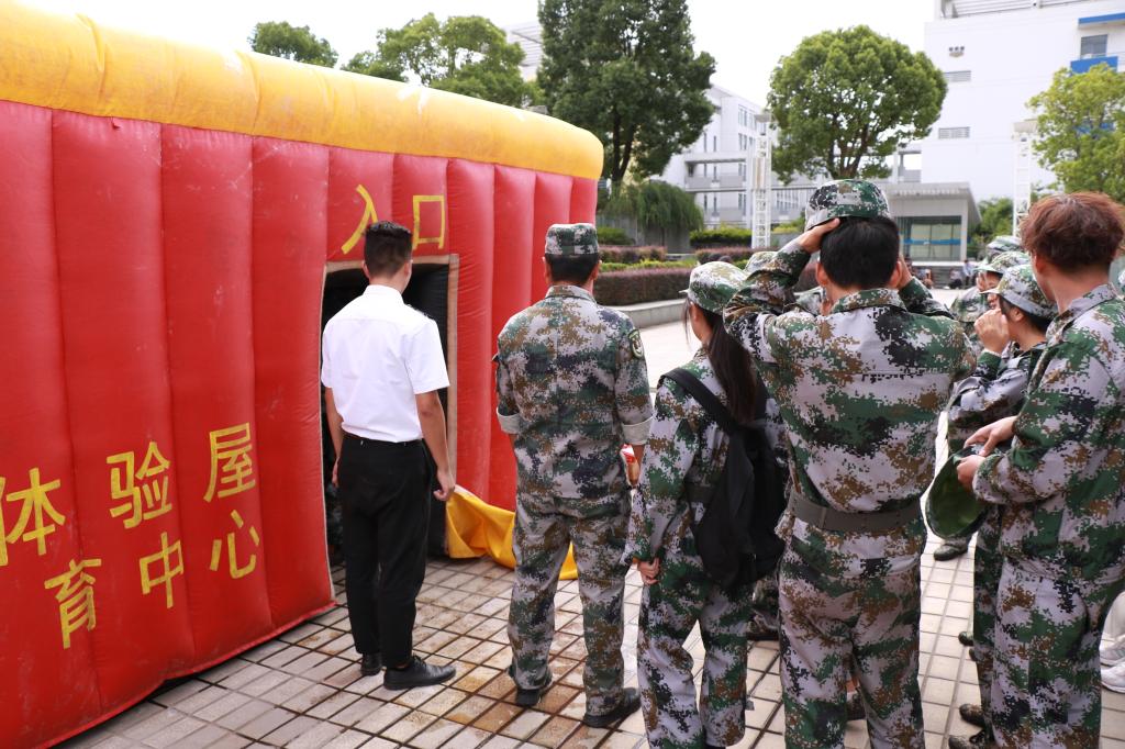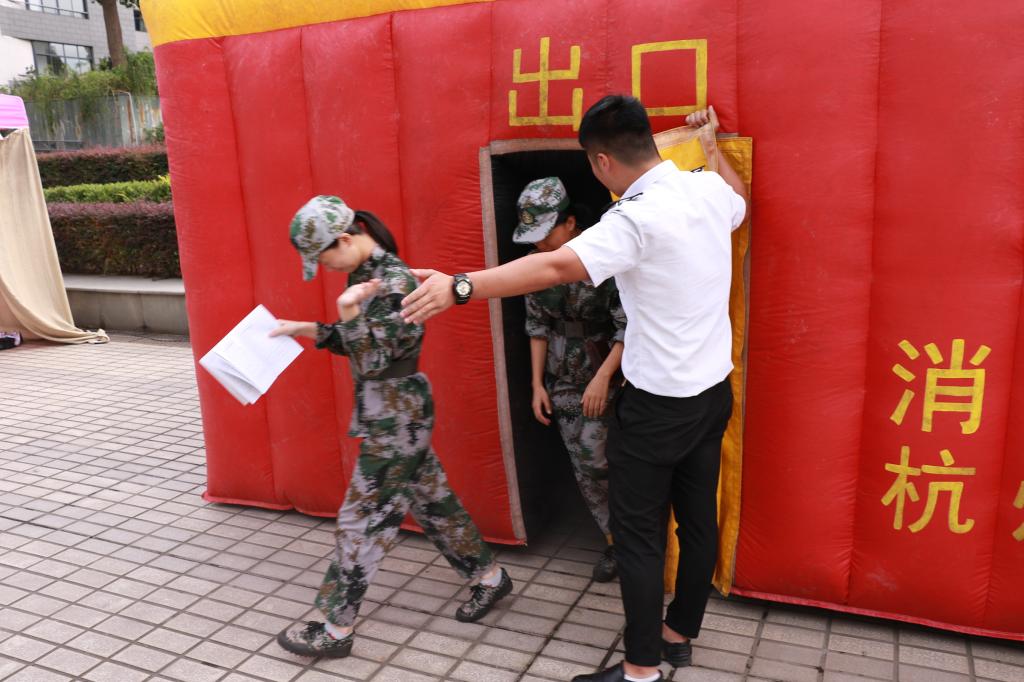 2018年9月25日下午我校保卫处、学工部利用新生军训期间举行了一次新生模拟消防安全逃生演练。本次演练利用安全逃生屋、模拟灭火器等设备,让学生模拟体验真实的火灾场景以及真实的灭火体验。