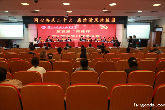 为深入学习宣传贯彻落实党的二十大精神和习近平总书记关于全面从严治党的重要论述精神,纵深推进全面从严治党和“清廉经院”建设,持续擦亮学校廉洁文化建设金名片,11月8日,我校在崇学楼三楼报告厅举办第九届“清风廉雨”文化节开幕式暨第三届“青莲杯”党纪党规知识竞赛决赛。学校党委班子成员、中层干部、各党总支委员、党支部委员、师生党员代表等150余人参加活动,纪委书记朱利萍主持了会议。