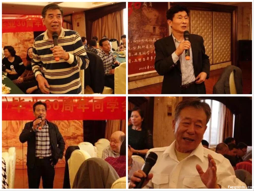 章松寿(1班班主任)、叶芬斌(2班班主任)、孟祥国(班长)、乔臻涛(最年长的同学)分别讲话。