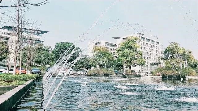 在缤纷蔓延的教学楼中,悠悠漫步。