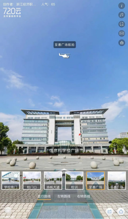 点击“云游母校”,通过VR带领校友们访问3D校园,游览经院风景