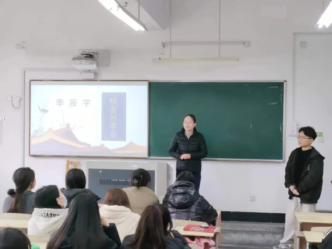 分享会开始,陈伟平老师向同学们介绍了季辰宇校友,同时希望同学们能在学习上、生活中多向校友汲取经验。